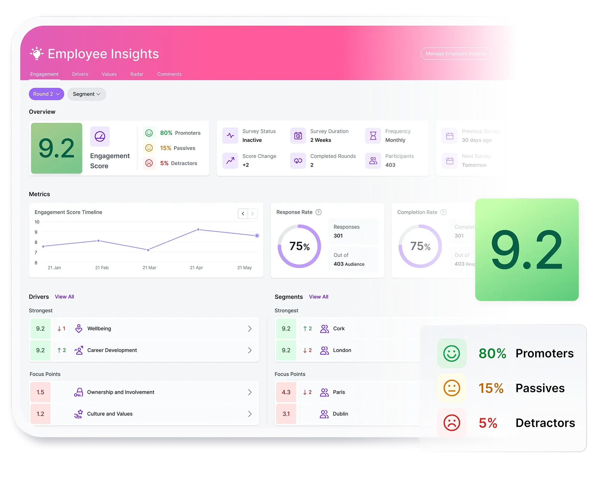 Get a pulse on sentiment and spot opportunities to improve with our comprehensive suite of employee listening tools.
